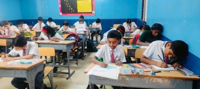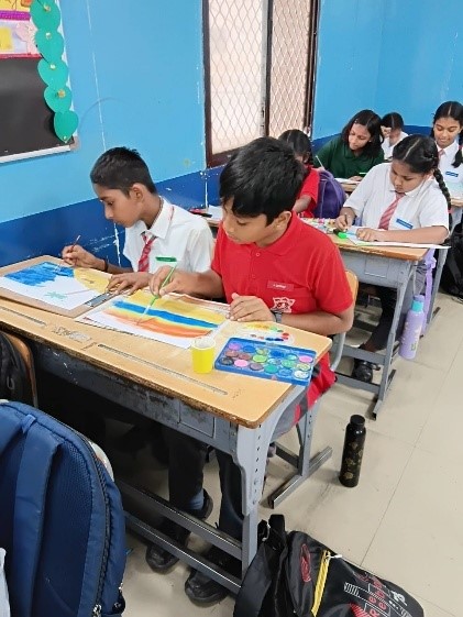 Judges: Mr Chandramohan and Mrs Sabitha. The new session began with a splash of colours and a chance for our young minds to showcase their creativity. An Interclass Drawing and Painting Competition for class 7 was held on April 1, 2025. The event was part of the school's ongoing efforts to encourage artistic expression among students. The competition aimed to provide a platform for young artists to showcase their skills while allowing them to engage in healthy competition.The competition was organized in a relaxed and fun-filled classroom environment, where students could express their imagination freely. The themes for the competition were as follows: