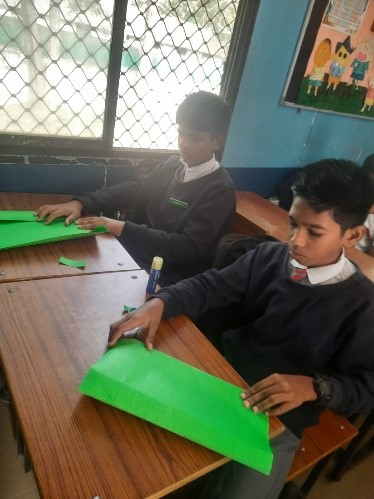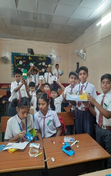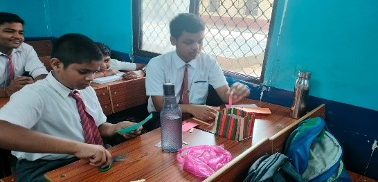 Making Classroom utilities activity was conducted on 11th April for Class VI. The primary objective of this CCA (Co Curricular Activity) initiative was to engage students in creating practical classroom utilities. These included a chalk holder, marker holder, out passes (for boys and girls), duster holder, and a box for lost and found items. The activity aimed to enhance students creativity, responsibility, and teamwork while contributing to improving the classroom environment.