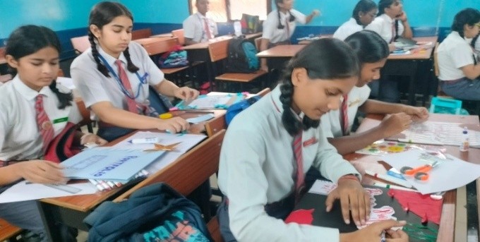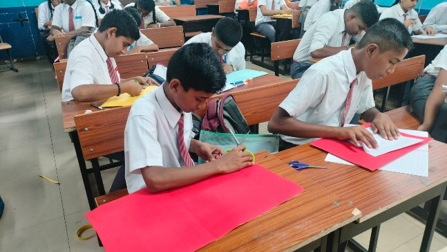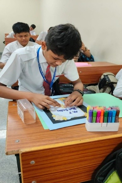 A Portfolio Making Activity was organized for Class 9 students to encourage creativity and provide a practical way to preserve their academic work, projects, and artwork. The aim of the activity was to teach students how to create personalized, durable folders to store their work for the semester or year. These folders would not only help them stay organized but also serve as a memento of their educational journey.