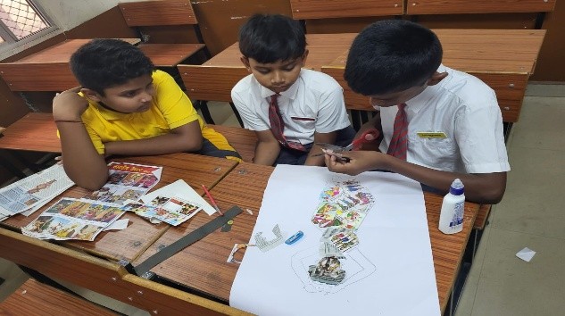 The Collage Making Competition for students of Class IX was conducted by April 9. This event was organized as part of the schools ongoing efforts to promote creativity and artistic expression among students. The main objective of the competition was to encourage students to explore their creativity and express their ideas visually using a variety of materials. The event aimed to develop students awareness of visual arts and foster a deeper understanding of how different media can be used to convey powerful messages and narratives.