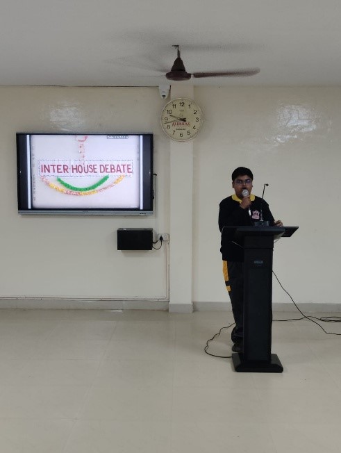 An Inter house Hindi Debate Competition was organized on 21st June 2025 for the students of Classes 9 and 11 on 21st June, 2025. The event witnessed enthusiastic participation and showcased excellent oratory skills by the students. The topic of the debate was highly relevant and thought provoking. Participants were divided into two groups for and against the motion. The debate not only enhanced the students critical thinking and public speaking skills but also encouraged them to explore the implications of technology in modern life.