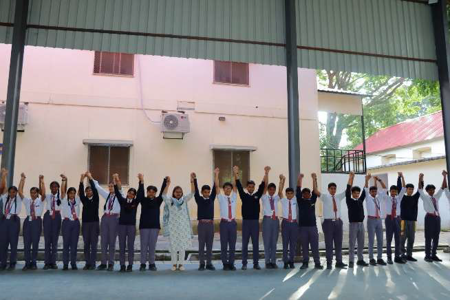 In a truly moving display of unity, the students and teachers of Classes 8 and 9 came together to form a Human Chain across the school grounds. With hands clasped, they stood shoulder to shoulder, symbolising the bond of responsibility and the strength of collective action. The act of holding hands was more than a gesture and the shared commitment of the school community towards the noble mission of cleanliness. Adding to the impact of the moment were the colourful posters and placards proudly displayed by the participants.