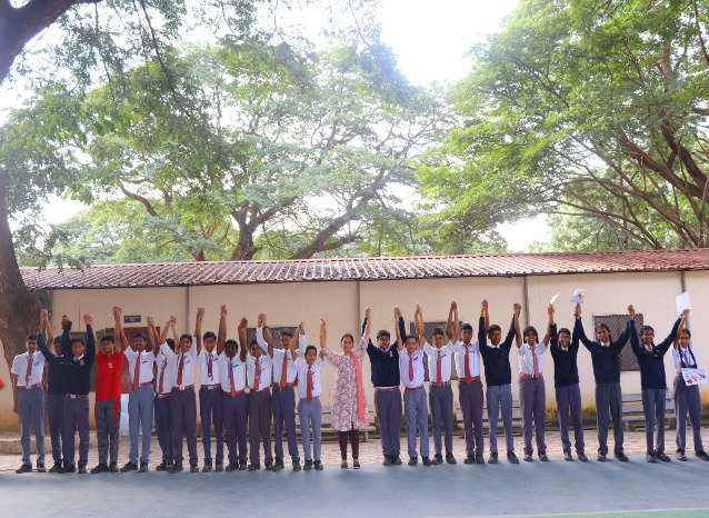 For classes 8th to 12th. A special highlight of the day was the Cleaning Campaign by NCC Cadets. The cadets, demonstrating discipline and responsibility, actively cleaned the school premises and surrounding areas. Before beginning their cleaning drive, the NCC cadets solemnly took the Swachatha Pledge, reaffirming their commitment to lead by promoting cleanliness. Their spirited participation inspired the entire school community