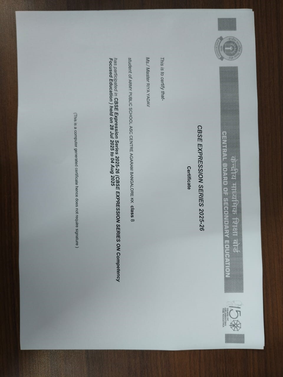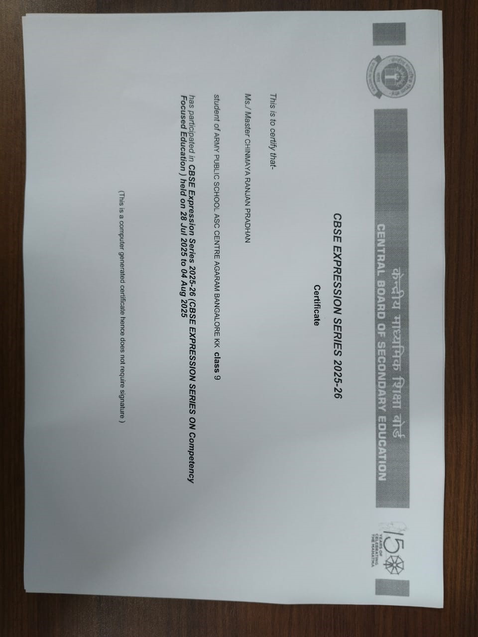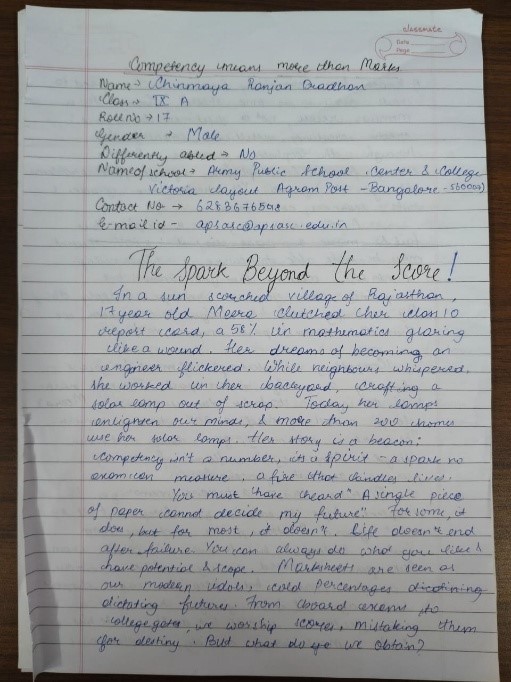 Army Public School ASC Centre and College enthusiastically conducted the 1st CBSE Expression Series for the academic session 2025 26 on 2nd August 2025. The event was held in accordance with the guidelines issued by the CBSE on the theme Competency Focused Education. Middle Stage Classes 6 to 8 Essay on the topic My learning adventure Everyday something new. Secondary Stage Phase 1 Classes 9 to 10 Essay on the topic Competency means more than marks.