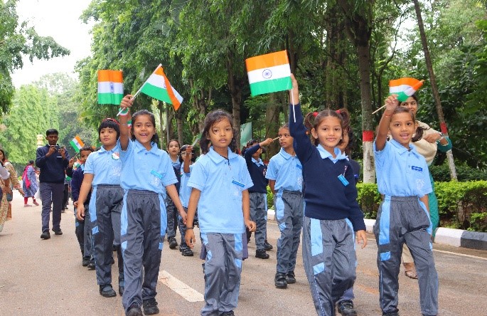 As part of the Azadi Ka Amrit Mahotsav celebrations and the nationwide campaign Har Ghar Tiranga, our school organized a Patriotic Rally to encourage citizens to hoist the National Flag with pride and unity. Students, holding the Tiranga and chanting patriotic slogans such as Vande Mataram and Bharat Mata Ki Jai, marched through the nearby streets spreading the message of national pride, respect for the flag, and collective responsibility. Teachers, NCC cadets, and Scouts and Guides also joined the rally, ensuring discipline and coordination. The event drew the attention of local residents, who appreciated the students spirited participation. The rally concluded with the National Anthem in the school premises, instilling a deep sense of patriotism and unity among all participants. The activity successfully promoted the message Har Ghar Tiranga, Har Dil Mein Deshbhakti.