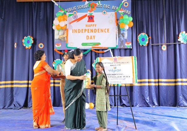 On 15th August, the school came together for the flag hoisting ceremony, which was carried out with full respect and honour. The National Anthem was sung with pride as the tricolour unfurled. The celebrations continued with cultural performances, including patriotic songs and dances, showcasing the rich heritage and unity of India. Vidyanjali students were awarded for academic excellence, adding to the joy of the event.