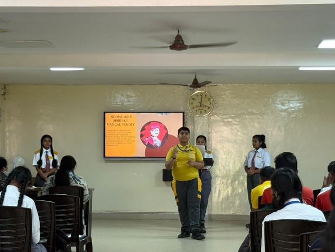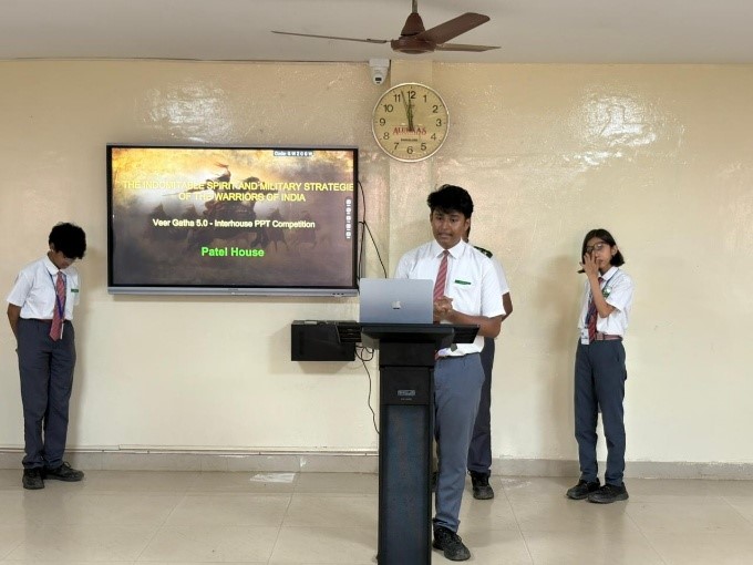Under the Veer Gatha Project 5.0, initiated by the Ministry of Defence and CBSE, an Interhouse Storytelling Competition was held for students of Classes VI to VIII. The competition aimed to make students aware of the sacrifices and bravery of Indias Gallantry Award winners and to instill patriotism and gratitude towards the armed forces. Students narrated inspiring tales of bravery through stories, poems, enactments, and creative presentations in English and Hindi. Their performances reflected deep respect for the Param Vir Chakra, Mahavir Chakra, and other gallantry awardees. The best entries were shortlisted and submitted on the Veer Gatha portal for regional evaluation. The event fostered a sense of pride, courage, and national devotion among the young learners.
