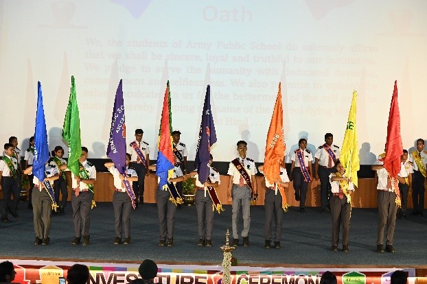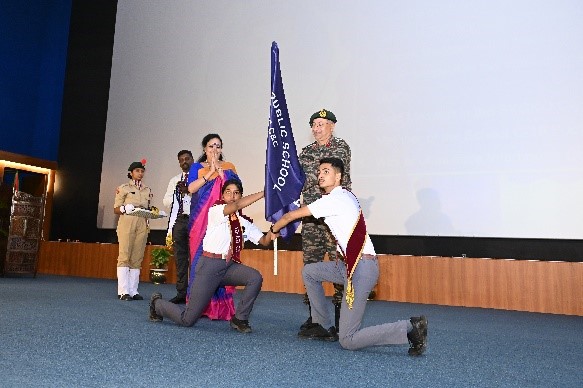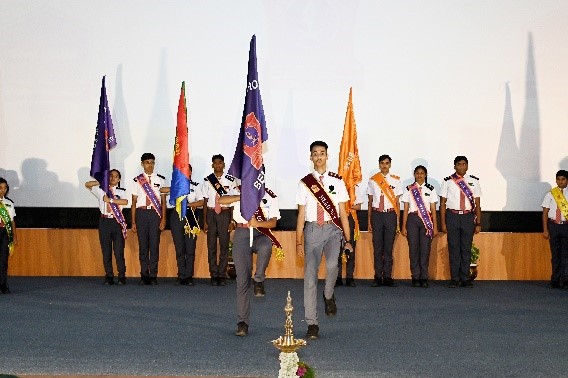 Student leaders were formally inducted into their roles through a swearing-in ceremony. House captains, sports captains, and prefects from the four houses - Sarojini Yellow, Bose Blue, Patel Green, and Shivaji Red - took their oaths, marking the beginning of their leadership tenure.