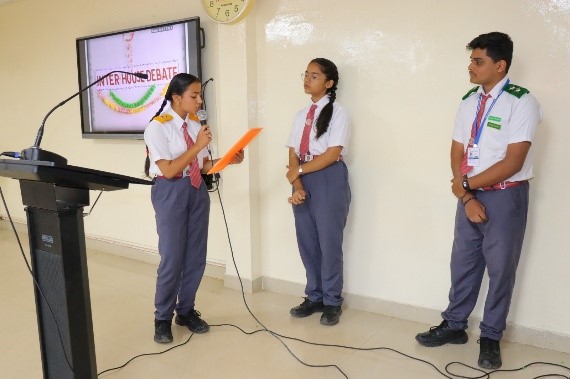 An Inter house Hindi Debate Competition was organized on 21st June 2025 for the students of Classes 9 and 11 on 21st June, 2025. The event witnessed enthusiastic participation and showcased excellent oratory skills by the students. The topic of the debate was highly relevant and thought provoking. Participants were divided into two groups for and against the motion. The debate not only enhanced the students critical thinking and public speaking skills but also encouraged them to explore the implications of technology in modern life.