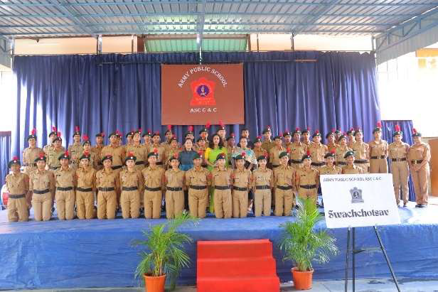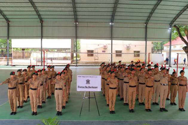 A special highlight of the day was the Cleaning Campaign by NCC Cadets. The cadets, demonstrating discipline and responsibility, actively cleaned the school premises and surrounding areas. Before beginning their cleaning drive, the NCC cadets solemnly took the Swachhata Pledge, their commitment to lead by example in promoting cleanliness. Their spirited participation inspired the entire school community.