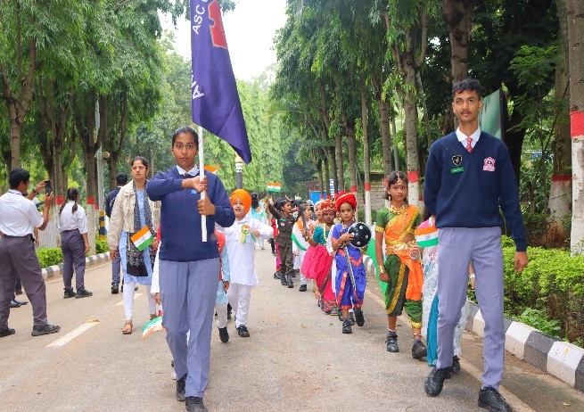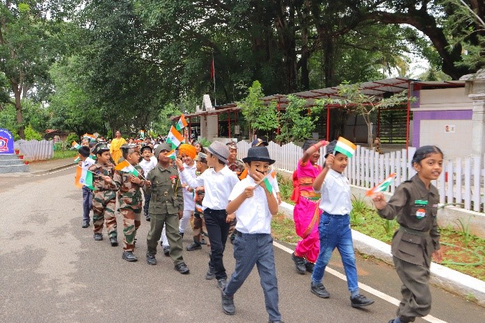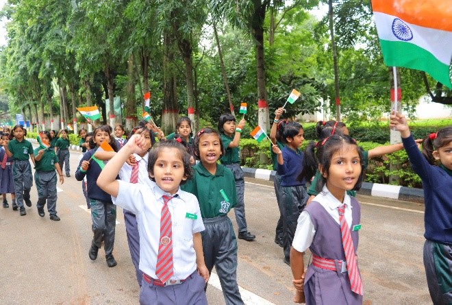 As part of the Azadi Ka Amrit Mahotsav celebrations and the nationwide campaign Har Ghar Tiranga, our school organized a Patriotic Rally to encourage citizens to hoist the National Flag with pride and unity. Students, holding the Tiranga and chanting patriotic slogans such as Vande Mataram and Bharat Mata Ki Jai, marched through the nearby streets spreading the message of national pride, respect for the flag, and collective responsibility. Teachers, NCC cadets, and Scouts and Guides also joined the rally, ensuring discipline and coordination. The event drew the attention of local residents, who appreciated the students spirited participation. The rally concluded with the National Anthem in the school premises, instilling a deep sense of patriotism and unity among all participants. The activity successfully promoted the message Har Ghar Tiranga, Har Dil Mein Deshbhakti.