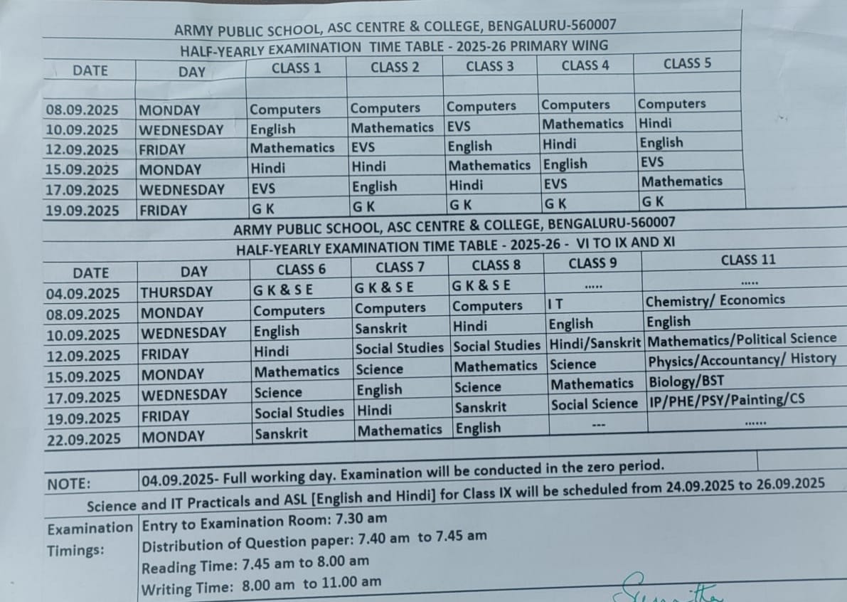 | 4 | Half Yearly Examination Time Table 2025-26 | Download |